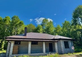 Фундамент- свайно-ростверковый. Отмостка по периметру дома- бетон, толщиной 100 мм; Стены несущие наружные- теплоблок 398 мм; Стены несущие внутренние- керамзитобетонные блоки. вентканалы-кирпич керамический 250х120х65; Перегородки- Перегородочные керамзитобетонные блоки, толщиной 120 мм; Перекрытие- многопустотные железобетонные плиты перекрытия (ПБ); Конструкция крыши- стропильная конструкция; Тип кровли- металлочерепица;